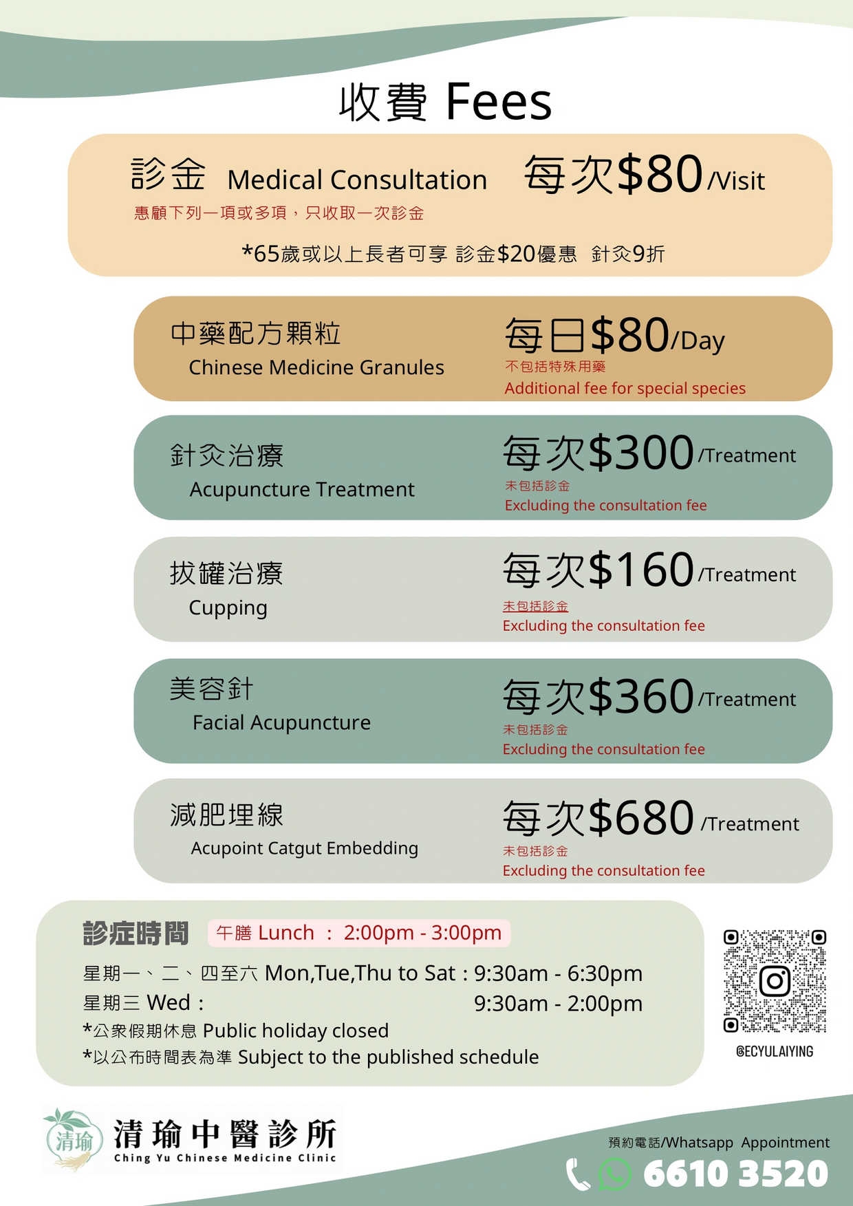 預約電話/Whatsapp: 6610 3520